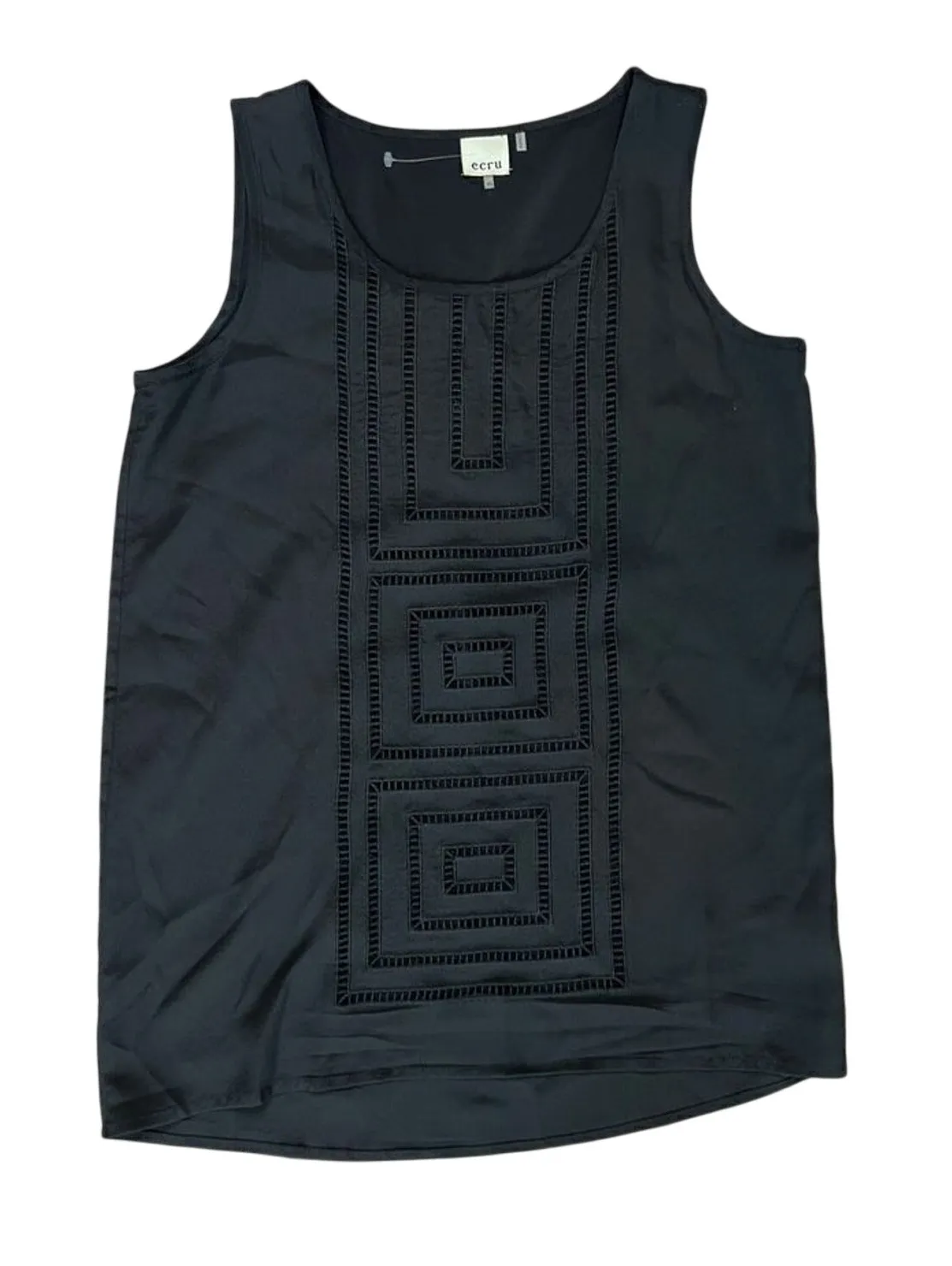 Ecru Washable Black Geometric Embroidered Tank Top sz XS. Lined front. 100% Silk. Hand washable. Ite... Show more