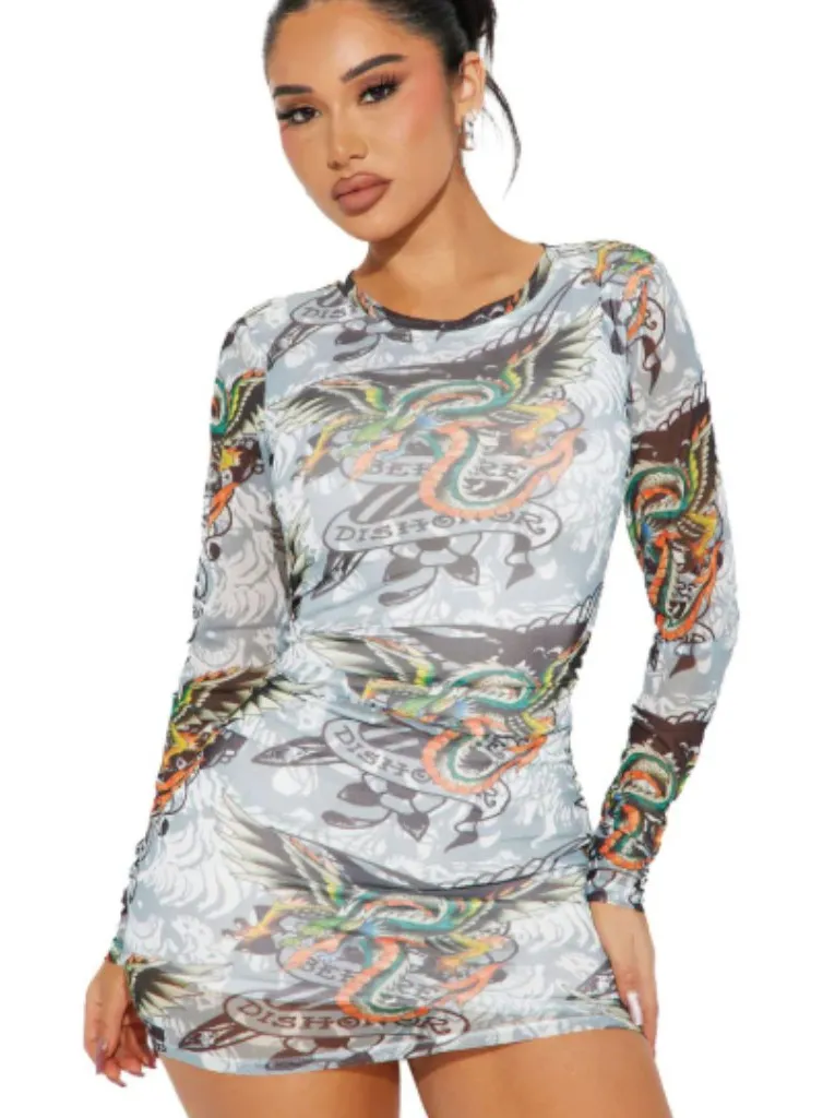 Ed Hardy Dragon Wings Mesh Long Sleeve Dress NWT Size L Y2K Grunge Black Size L - $45 New With Tags - From Kelly