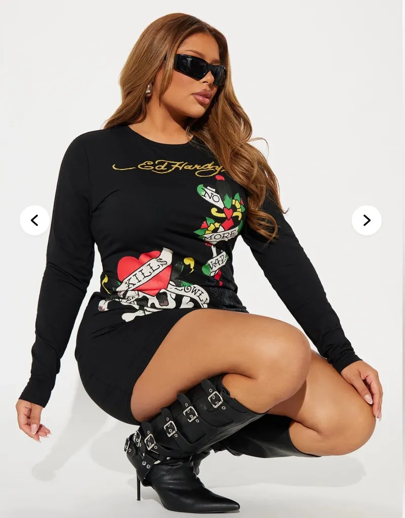Ed Hardy LKS Skull Long Sleeve T-shirt mini Dress size large black Y2K retro - $49 - From Melissa