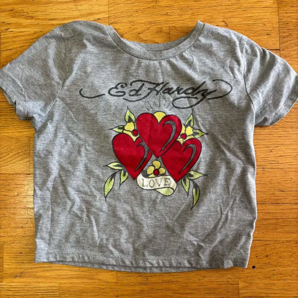 Ed Hardy Love Heart Streetwear Preppy Goth Logo Cropped T-shirt L Gray Size L - $15 - From Rachel