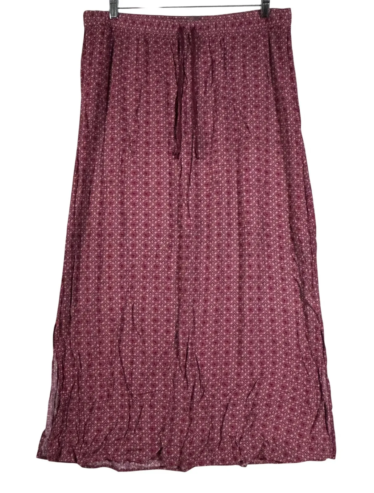 Eddie Bauer maxi skirt in a red burgundy geometric print. This flowing skirt features a comfortable... Show more