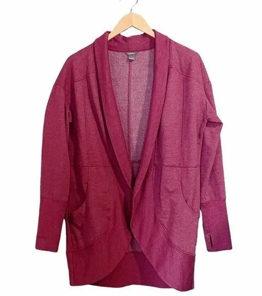 Eddie Bauer cardigan. Fleece lined camp fleece sweatshirt wrap with thumb holes, shawl collar & pock... Show more