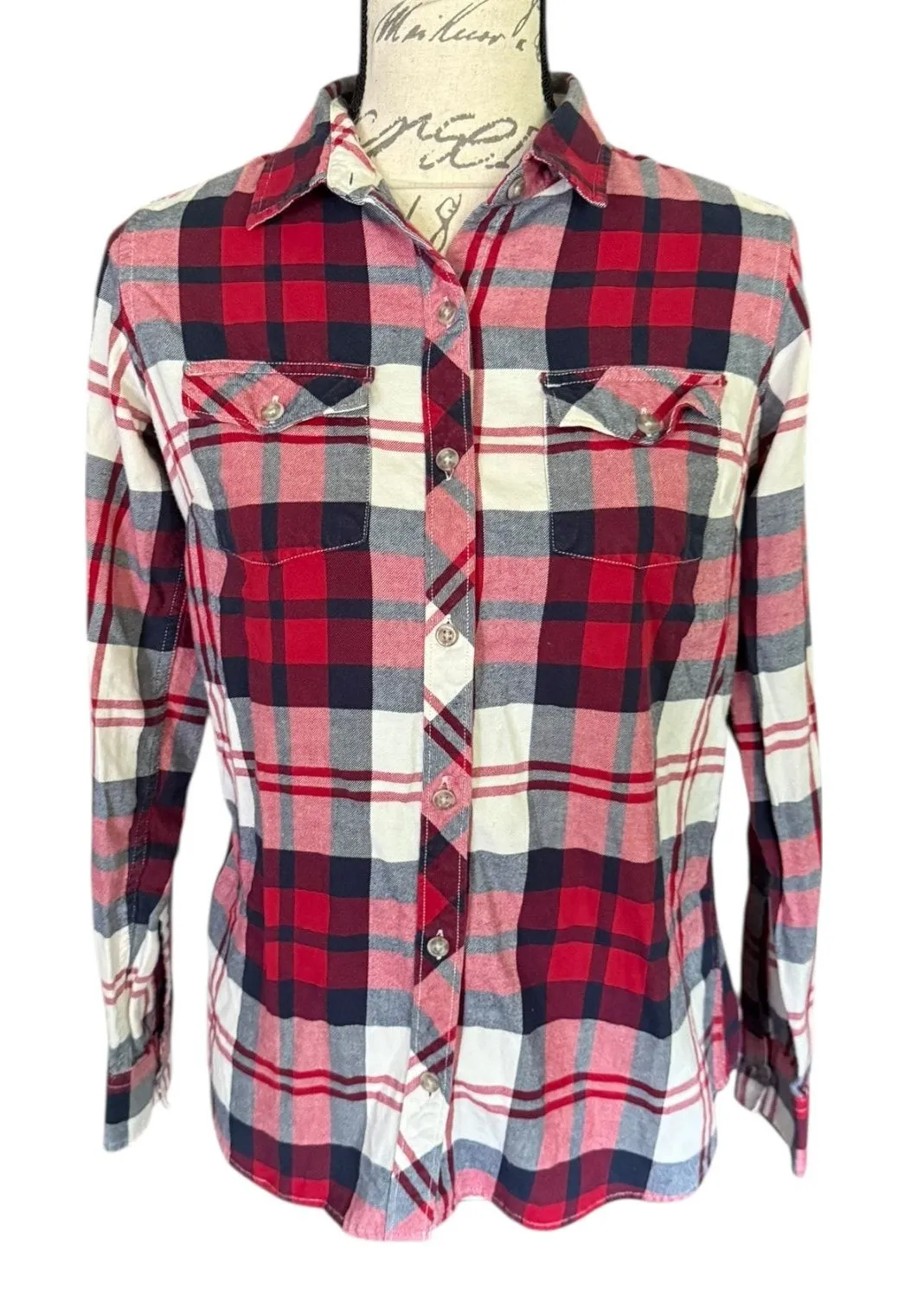 * Used * Eddie Bauer flannel shirt * Size small * Red and white plaid * Classic fit * Button f... Show more