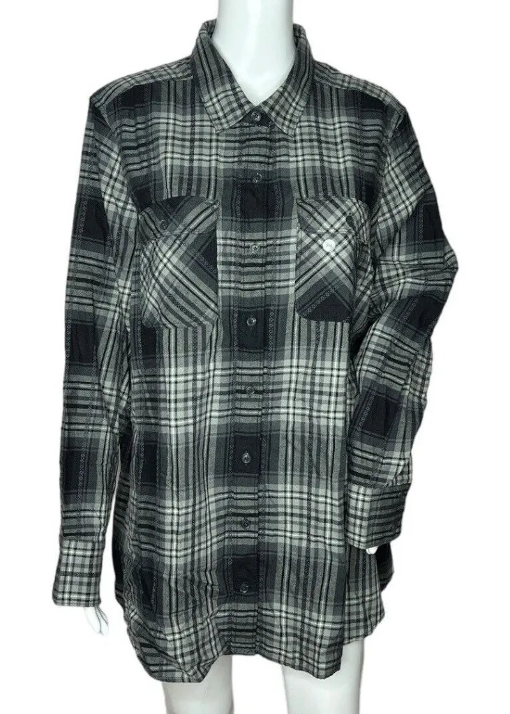 Eddie Bauer Shirt Womens 2x Black Gray Plaid Long Sleeve Campcore Cabincore Women’s Size 2X Long Sle... Show more