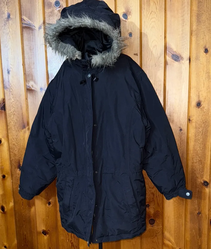 Black jacket with warm insulation. Ideal for chilly days. Has been worn but still in good condition... Show more