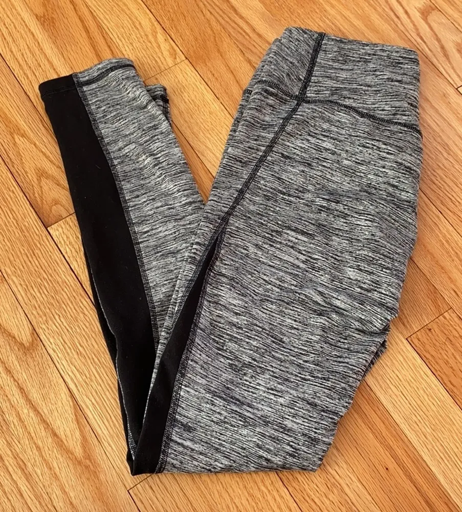 Eddie Bauer black and gray lines style leggings. Black stripe down part of side hem. Trendy right no... Show more