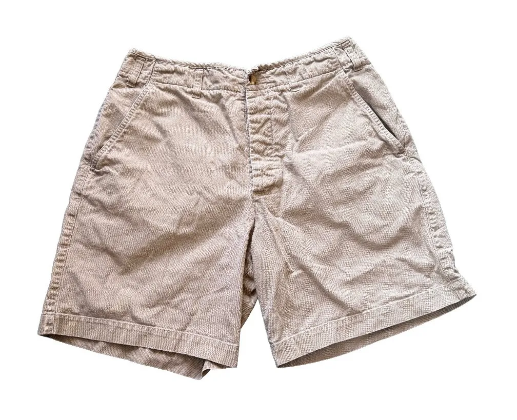 Vintage Eddie Bauer khaki shorts in timeless beige. These classic cotton shorts feature a relaxed fi... Show more