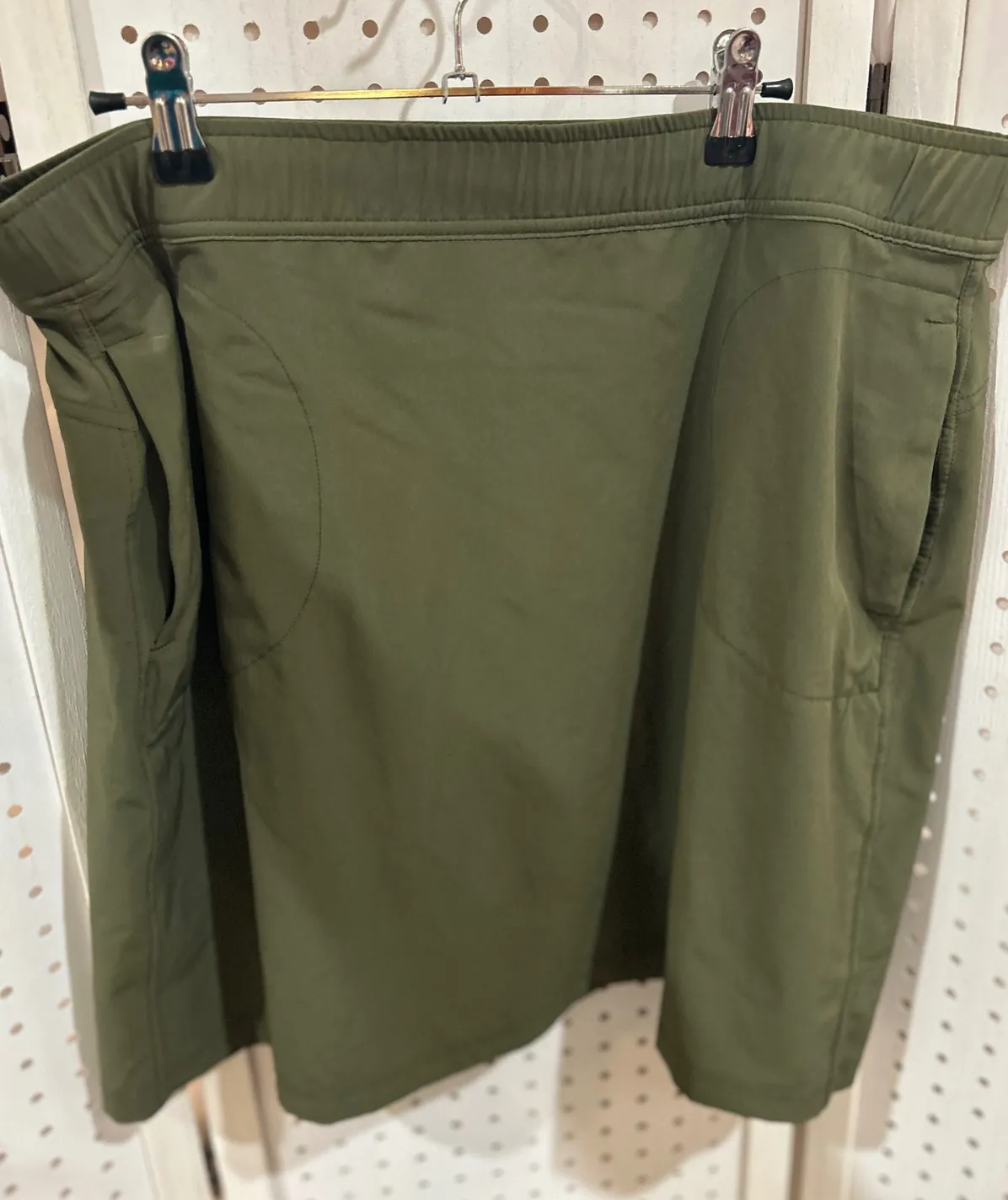 Eddie Bauer olive green utility skirt women's size large. This skirt features an elastic waistband f... Show more