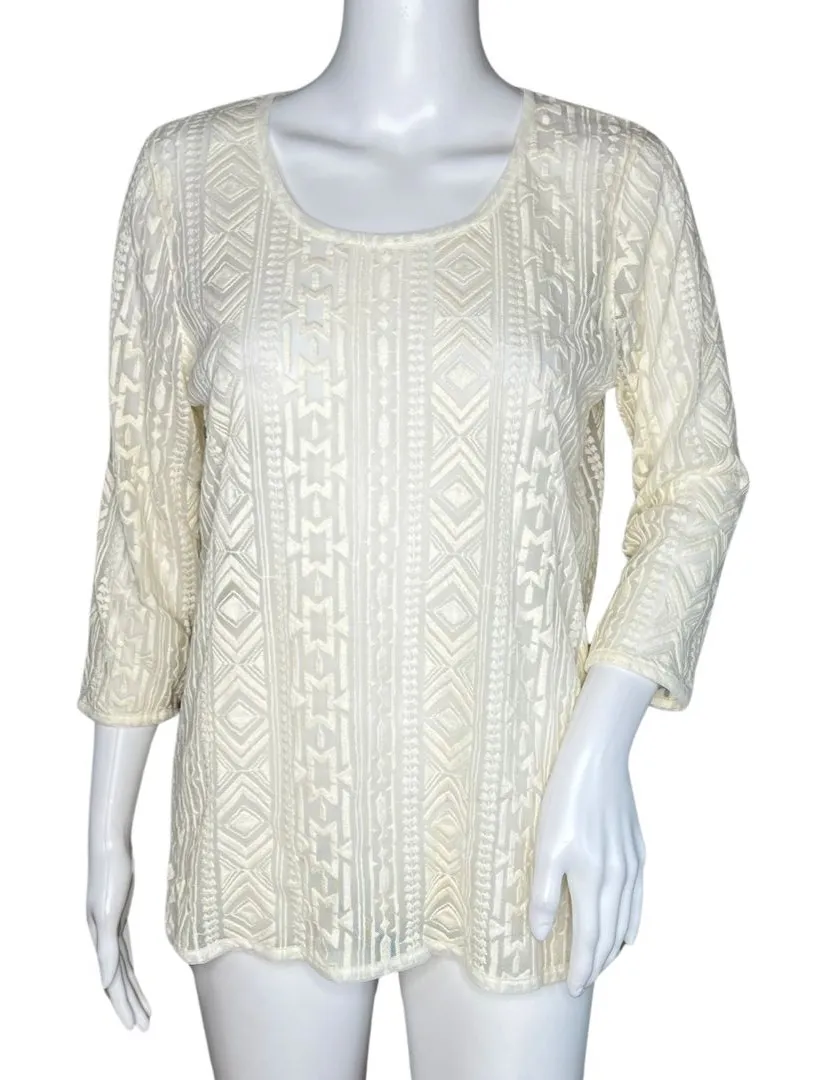 Eddie Bauer Shirt Women Small Cream Sheer Lace Top Embroidered Mesh Feminine Women's Size Small Sc... Show more