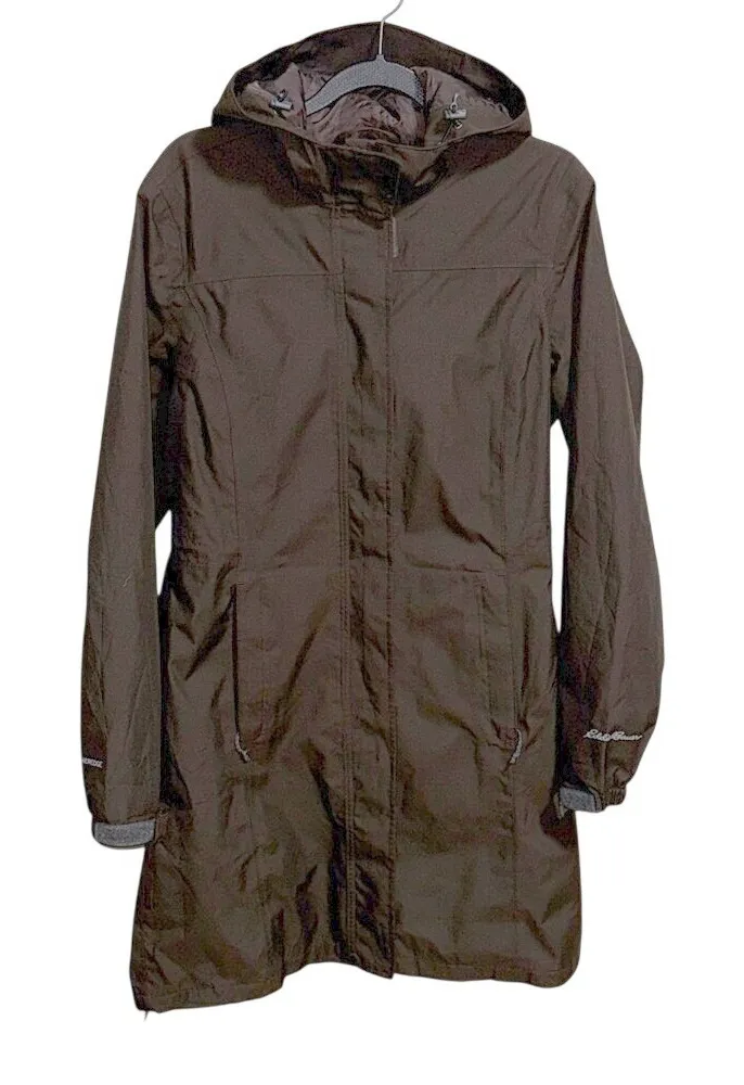 Eddie Bauer Dark brown Size small Front zipper pockets Hooded Removable belt Great east conditi... Show more