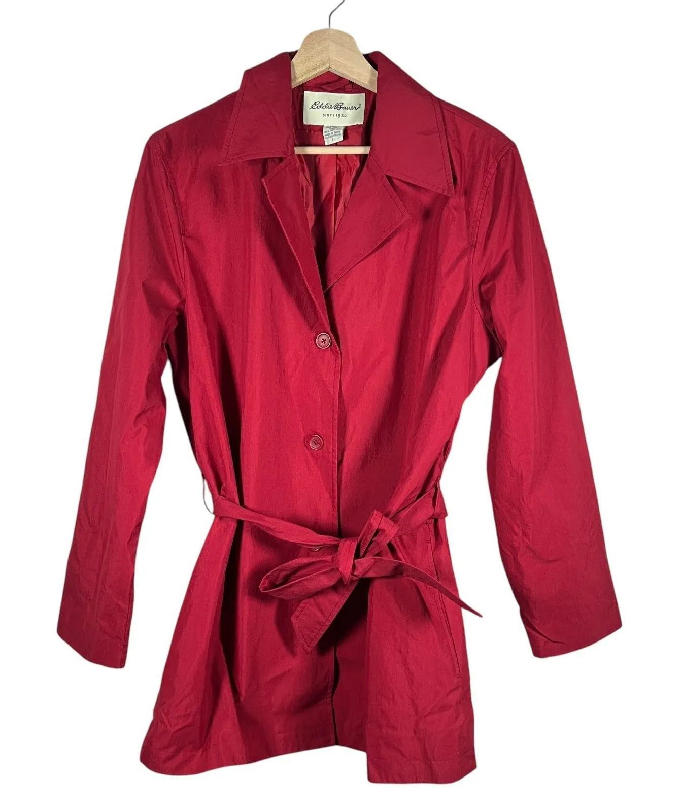 Eddie Bauer Womens Belted Trench Coat Size L Red Cotton Nylon Holiday Excellent pre-owned condition... Show more