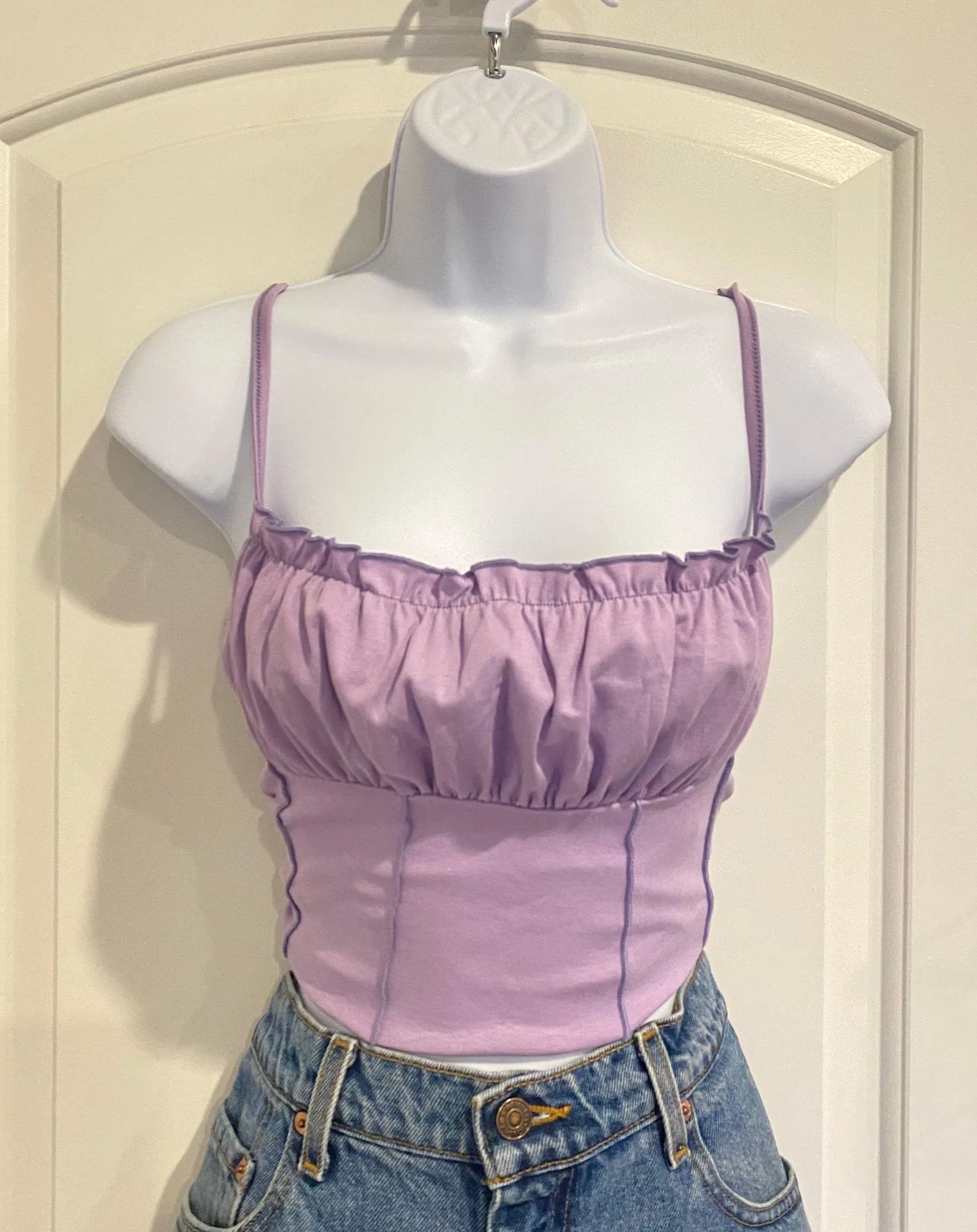 Purple lettuce-trim cami crop top, from SheIn. Size XL, but fits a size Large truly. Brand new! Perf... Show more