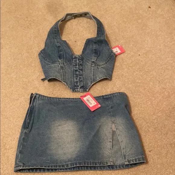 Denim Halter Top and Skirt Set Blue - $40 New With Tags - From Nicole