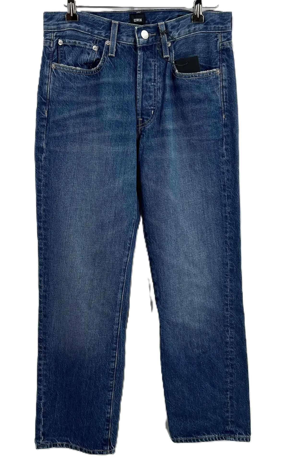 Edwin Indigo Distressed Button Fly Ankle Vintage Straight Jeans Womens Size 26 Get ready to turn heads with these Edwin jeans. Featuring minor distressing on the edges and a stylish button fly, these jeans are perfect for any casual outing. Made from 100% Organic Cotton, they offer comfort and durability, ensuring you look great all day. The ankle-length vintage straight cut gives them a chic and contemporary look. Condition: New condition. Size: 26 Features: Indigo, Denim, Five-pocket, Button Fly, Distressed Edges, Ankle-length Brand: Edwin Type: Jeans Style: Vintage Straight Color: Indigo Material: 100% Organic Cotton Measurements: Waste 15 inches Rise 10 inches Inseam 28 inches Leg opening 7 1/2 inches Keywords: Casual, Comfortable, Versatile, Durable, Chic, Contemporary, Fashionable, OrganicCotton, Women, Streetwear