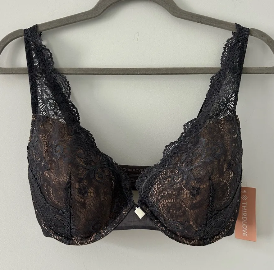 Thirdlove All Day Lace 24/7 Contour Plunge Bra Dark Grey Size 32F Color Dark Grey/ Nude New with tags All day lace Uplift cups with shaping cups and removable pads Flexible poke free underwire Scratch free Tagless label Website states bra fits true to size No flaws 1024