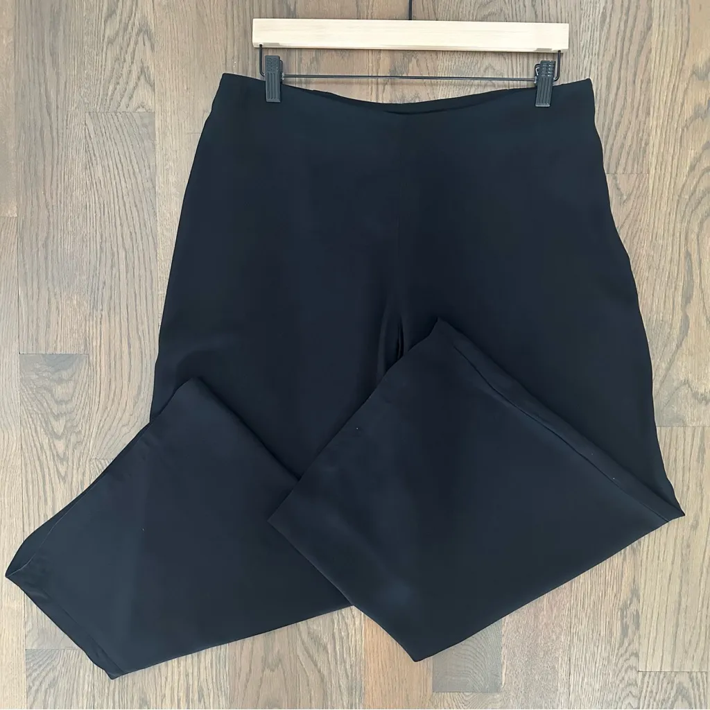 Eileen Fisher silk high waist side zip wide leg pant. In black. Flat front waist band, button and zi... Show more