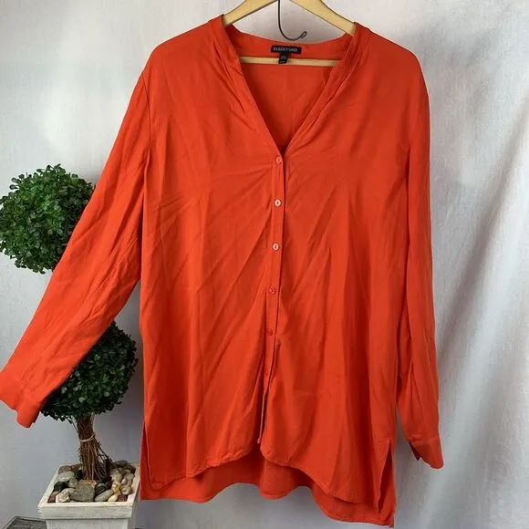 Eileen Fisher 100% Silk Tangerine Orange Long Sleeve Button Down Shirt Dress Very good pre owned N... Show more