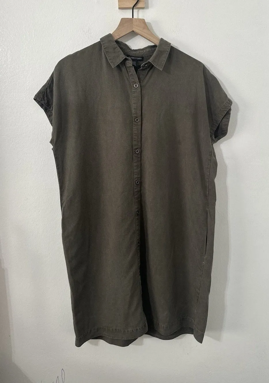 Eileen Fisher Army Green Cap Sleeve Button Down Shirt Dress S/P Linen Blend - $30 - From Marissa