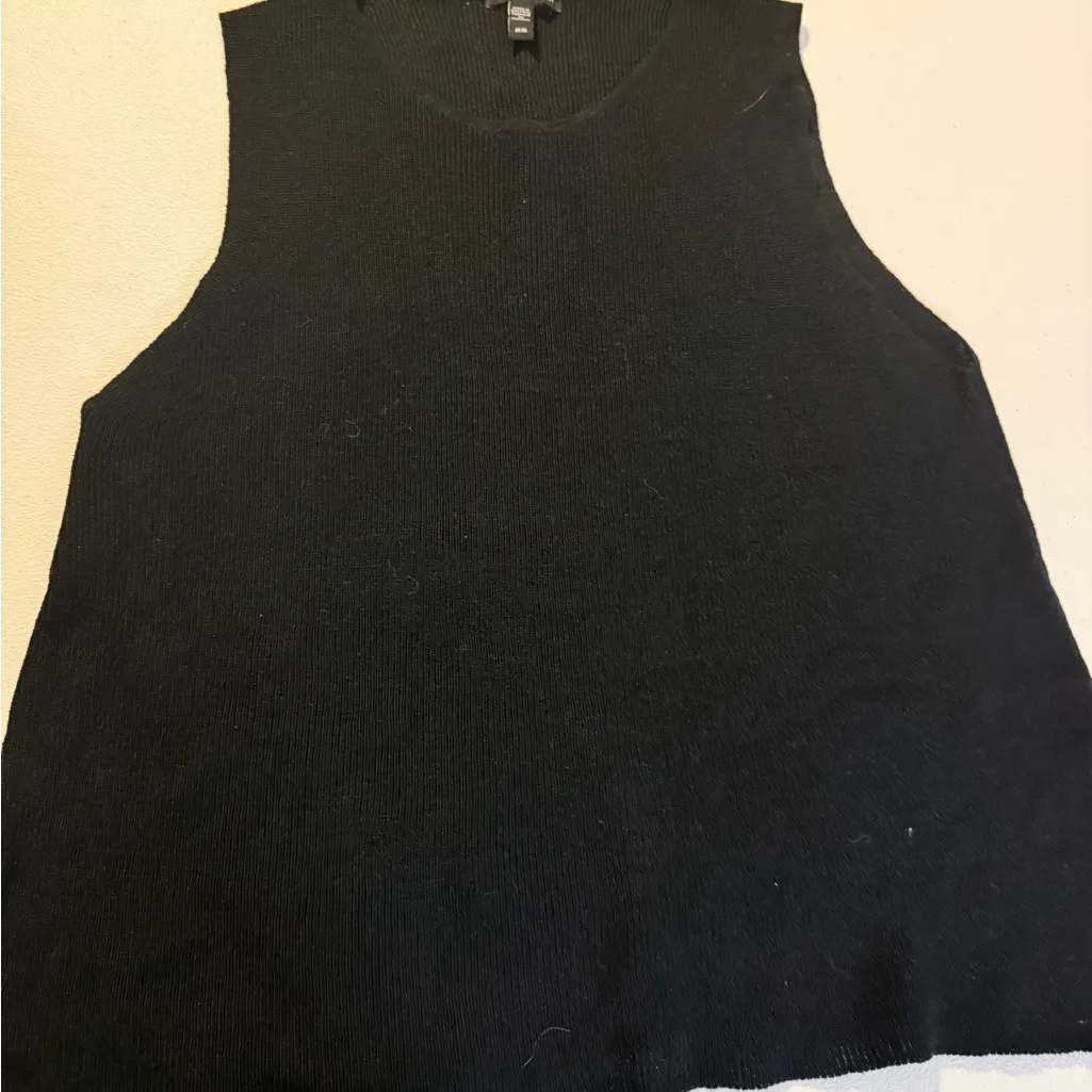 Eileen Fisher Black Organic Linen Sleeveless Medium Tank Top Knit Stretchy Shirt - $28 - From Nina