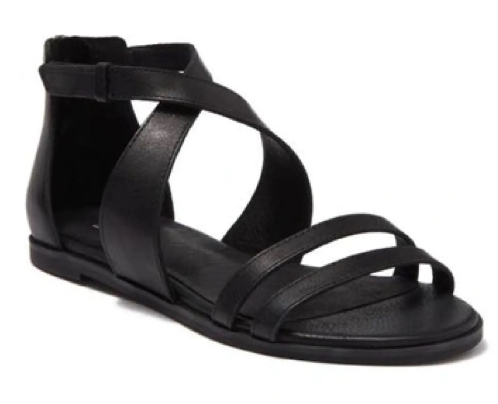Eileen Fisher Cici Black Strappy Flat Sandals Flat black leather sandals Two narrow straps across th... Show more