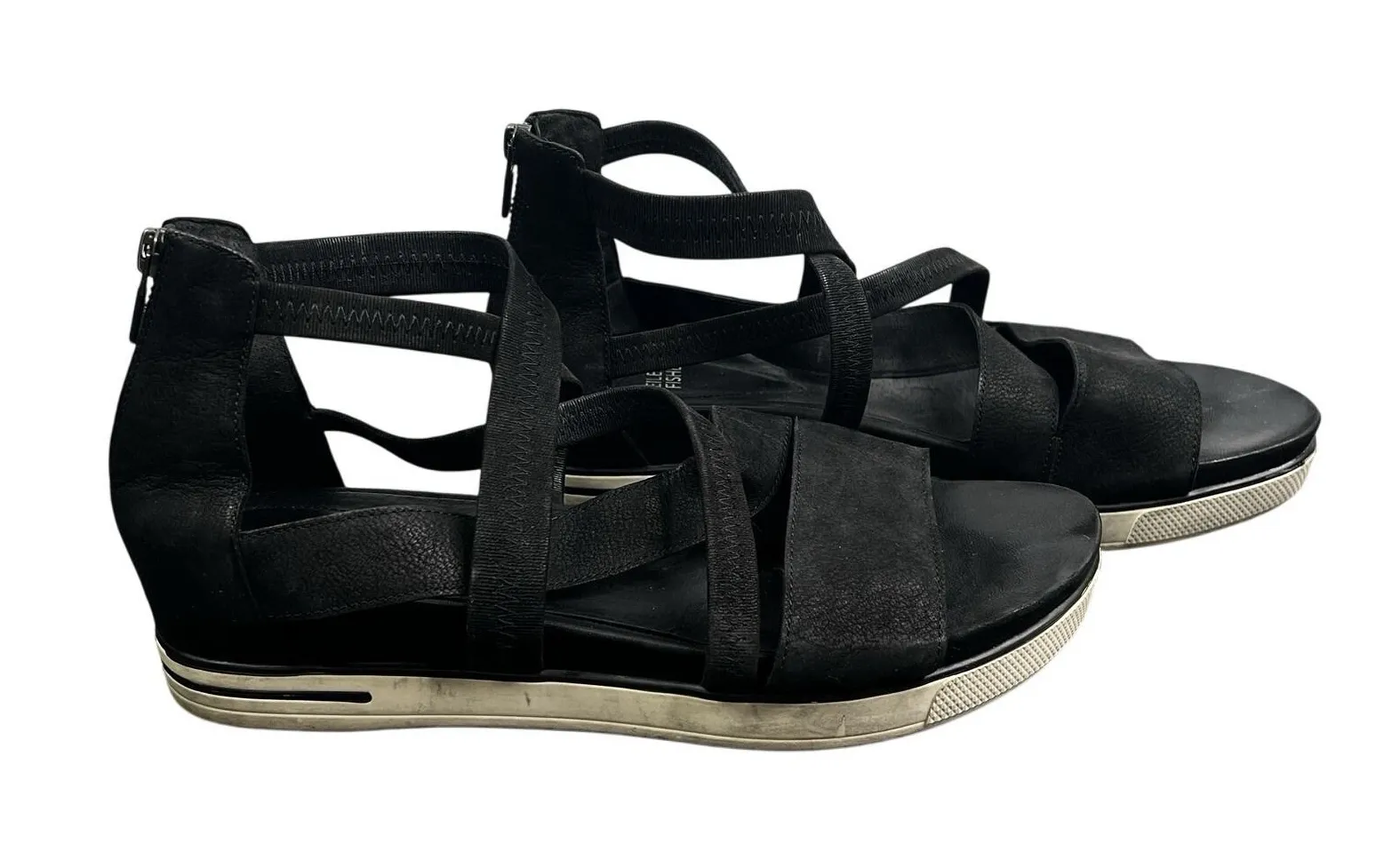 Eileen Fisher sandals, Eileen Fisher wedges, black wedge sandals, strappy wedge sandals, Eileen Fish... Show more