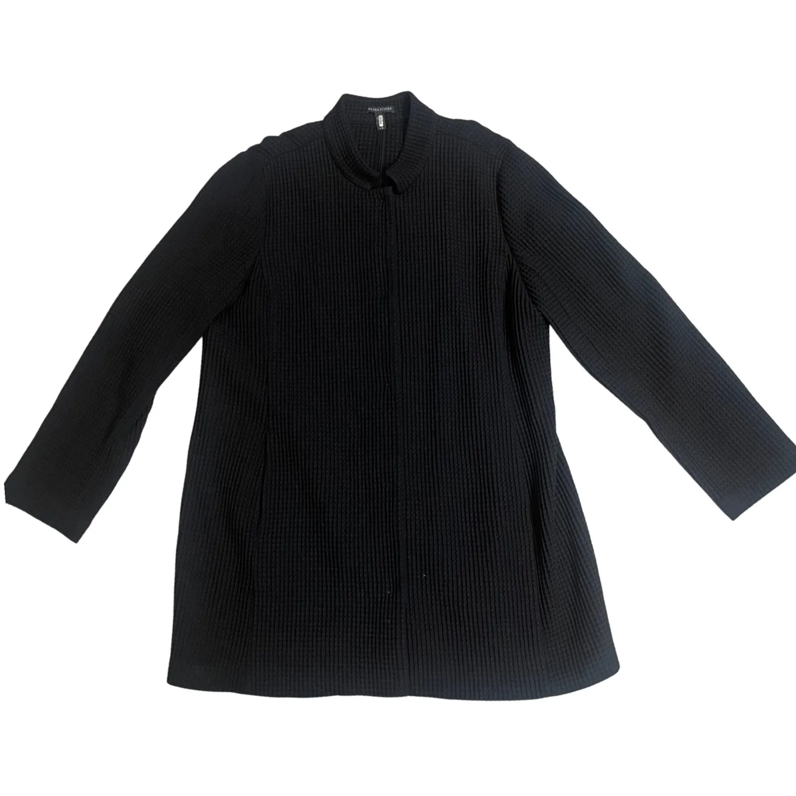 EILEEN FISHER Black Textured Knit waffle Collar longSleeve Cardigan Jacket Larg See all approx meas... Show more