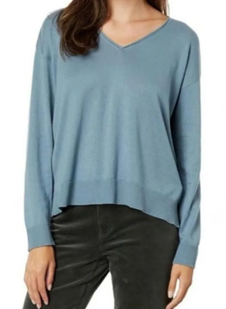 Eileen Fisher Boxy Pullover V-Neck Organic Cotton Blend Sweater in Blue Steel Oversized Drop sleeve... Show more