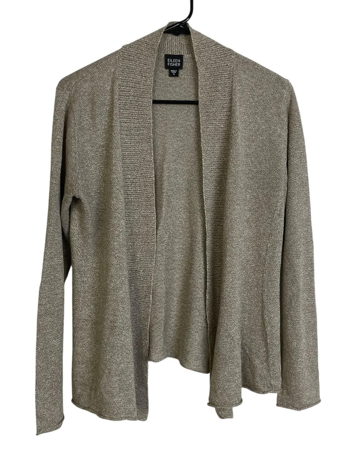 This listing is for an Eileen Fisher Womens Cardigan Sweater. Tan/Beige. Ribbed trim. Cotton/Nylon/V... Show more