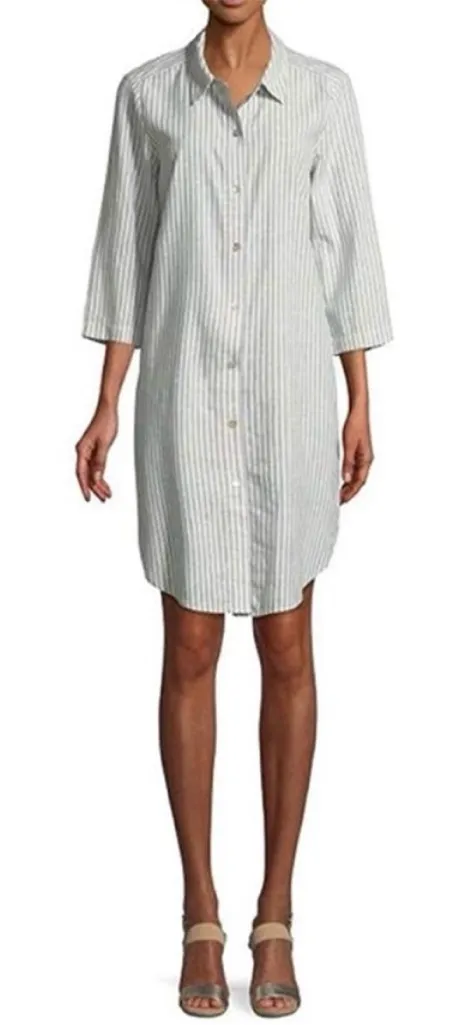Like new Eileen Fisher Chambray Hemp Striped Shirt Dress Tunic. Can be worn as a dress or over pant... Show more