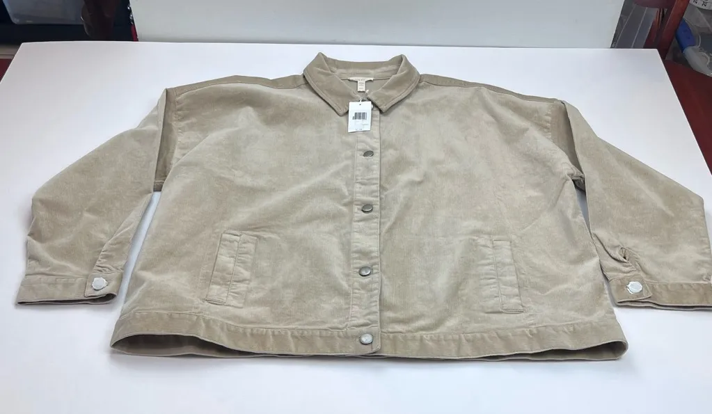 Eileen Fisher Women XL Maple Oat Khaki Classic Collar Button Front Corduroy Jacket NEW Oversized by... Show more