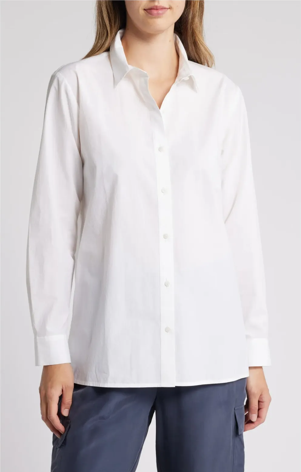 A classic spread collar furthers the modern-chic style of this button-up shirt fashioned from organi... Show more