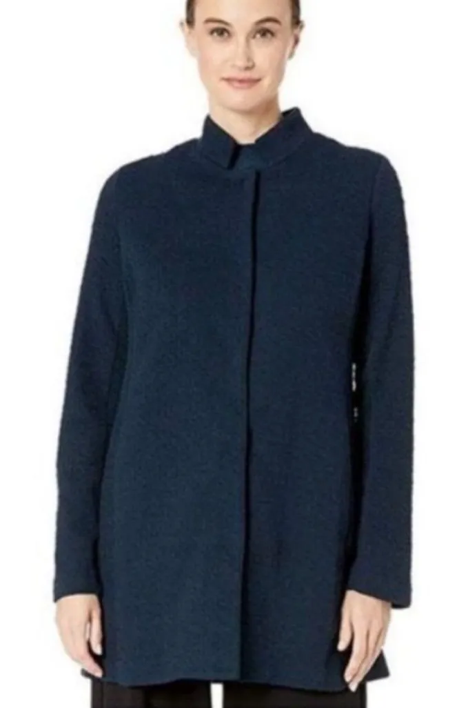 Eileen Fisher Organic Cotton Tencel Pucker Jacket Women's Petite Medium Navy. With a soft puckered f... Show more