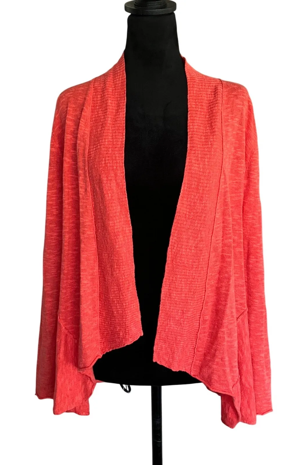 Eileen Fisher Cotton Silk Blend Open Front Long Sleeve Cardigan Sweater Coral Small (sku#696) Cotton... Show more