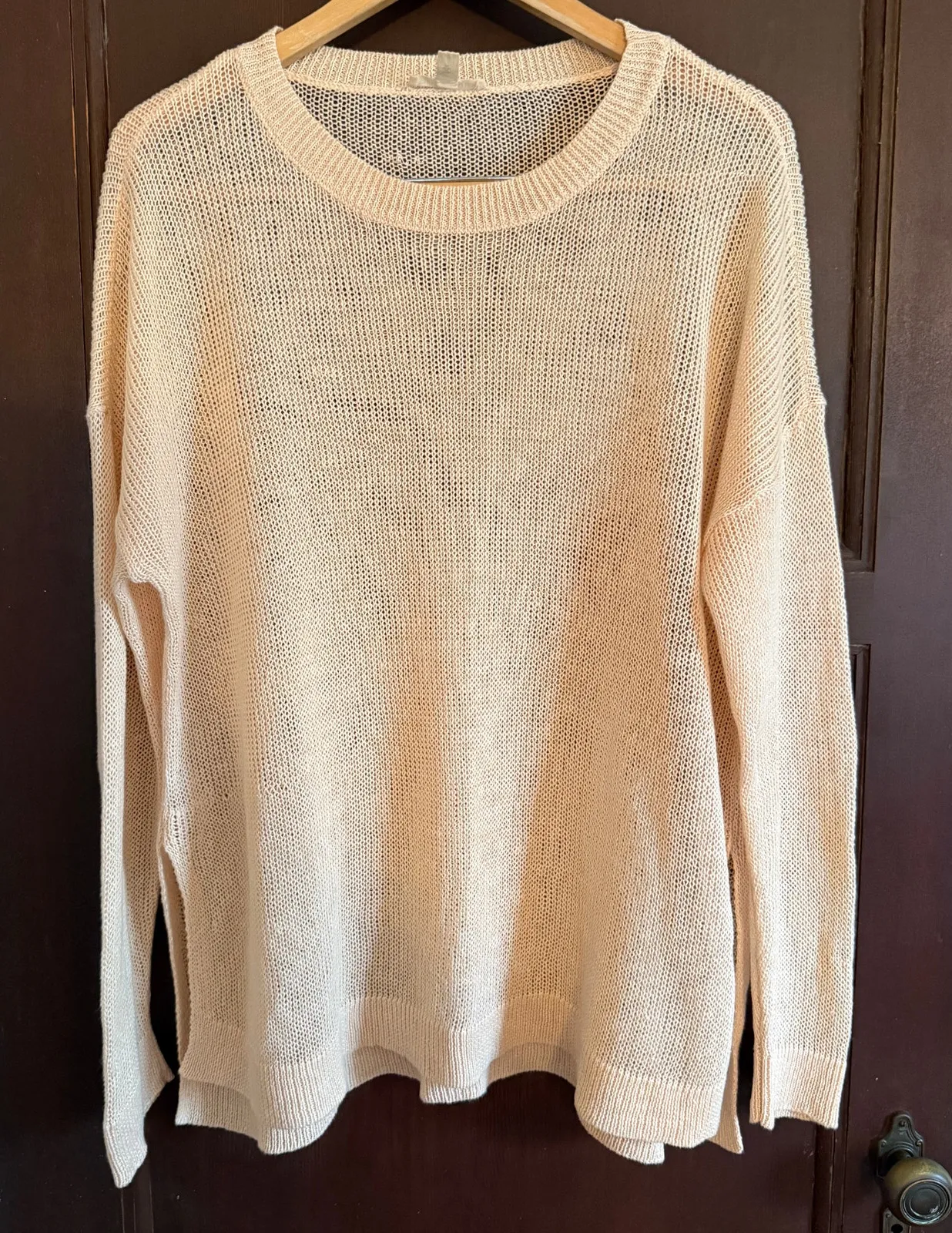 EILEEN FISHER | Cream 100% Linen Lightweight Open Weave Crewneck Sweater 100% Linen Lightweight Ope... Show more