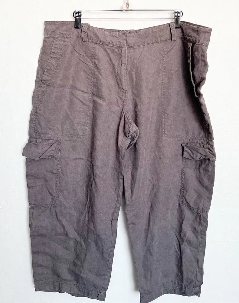 Eileen Fisher Cropped Linen Cargo Wide Leg Pants Womens Plus 16 Dark Grey CONDITION: Preowned, good... Show more