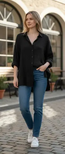 Discover your new favorite everyday essential with this dark navy blue ribbed knit top. The textured... Show more