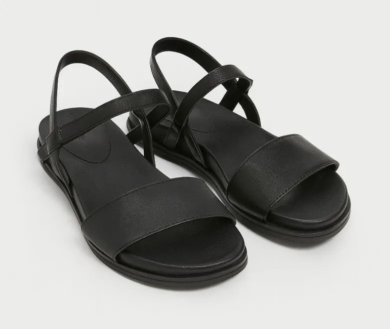 Eileen Fisher Shoes Womens Size 9 Black Leather Sandals Flat Slip On Comfort Minimal Condition: Good... Show more