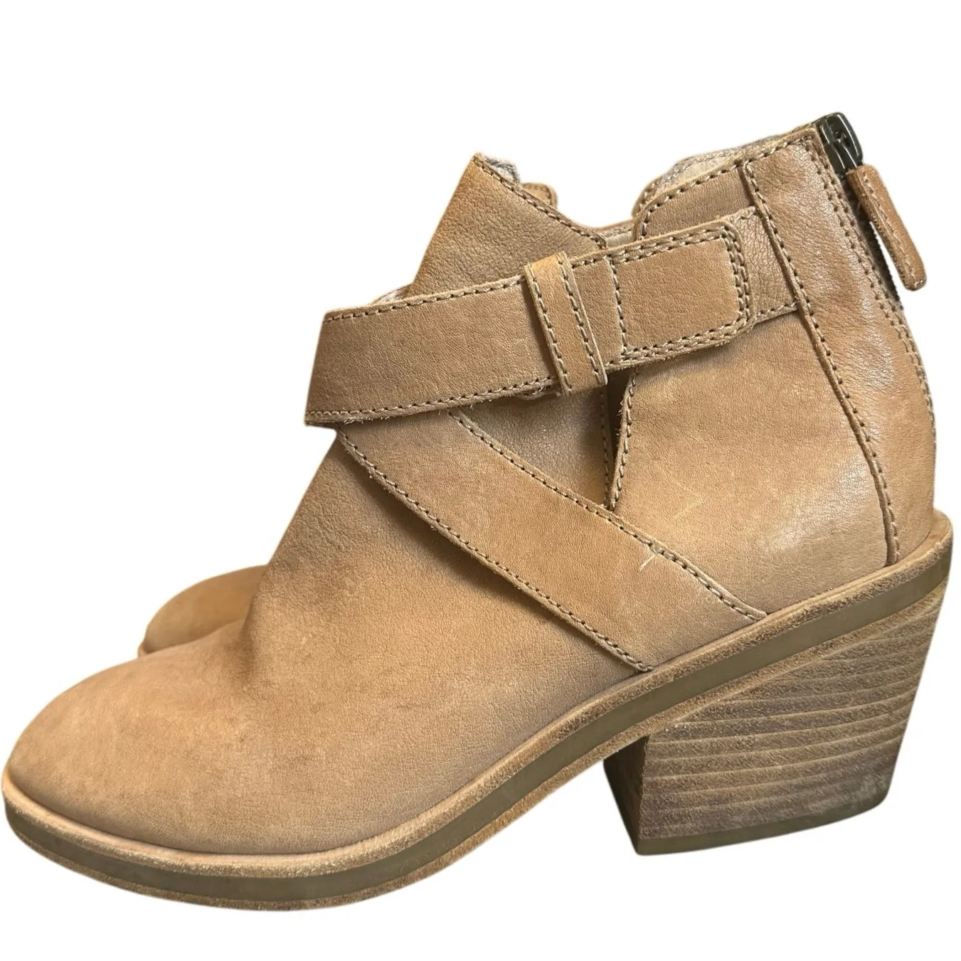 Features: Soft nubuck leather upper with crossover strap detail; functional back zipper with pull tab; almond toe silhouette; 2.5" stacked block heel for stability; cushioned footbed
