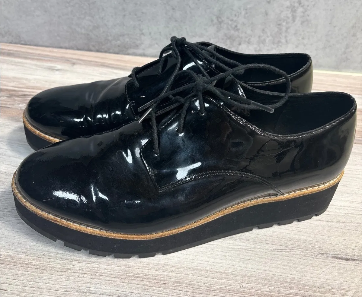 Eileen Fisher Eddy Derby Sleek platform oxfords in a glossy patent finish. These are in the size wom... Show more