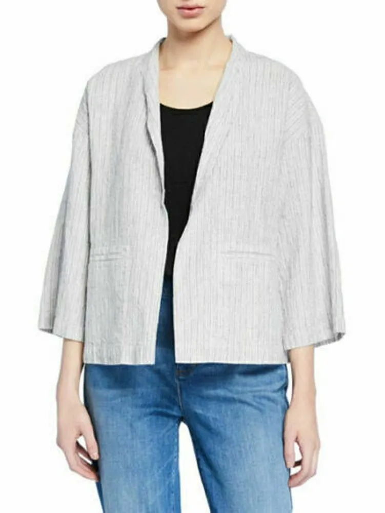 Eileen Fisher Ivory Ticking Stripe Boxy Organic Jacket *Excellent condition. Details: Eileen Fishe... Show more
