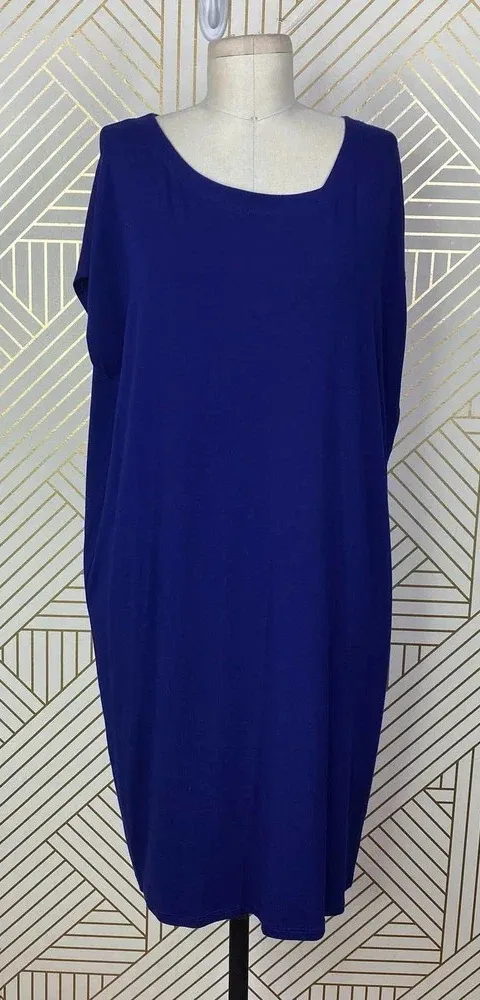 Eileen Fisher Jersey Dress in Blue. Asymmetric square neck Jersey material Short sleeve Pullover Kn... Show more