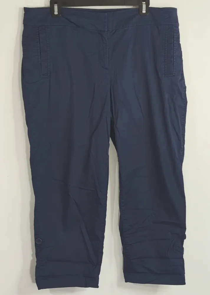 Eileen Fisher Navy Blue Organic Cotton Tencel Blend Capris Pants Size L Solid Navy Hook & Eye With... Show more