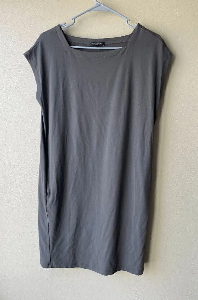 Used - excellent condition Eileen Fisher Petite Grey Green Sleeveless Swing Dress with Pockets Size... Show more