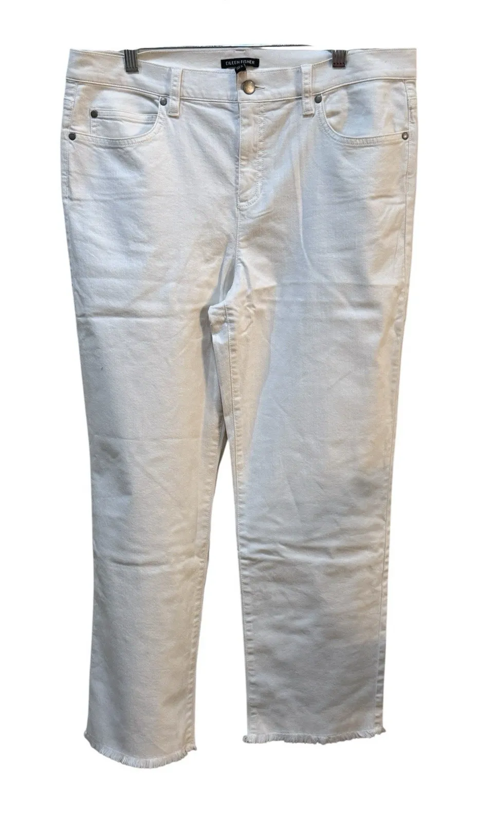 The Eileen Fisher Garment-Dyed Organic Cotton Denim Cropped Jean in White, size Medium, is a stylish... Show more
