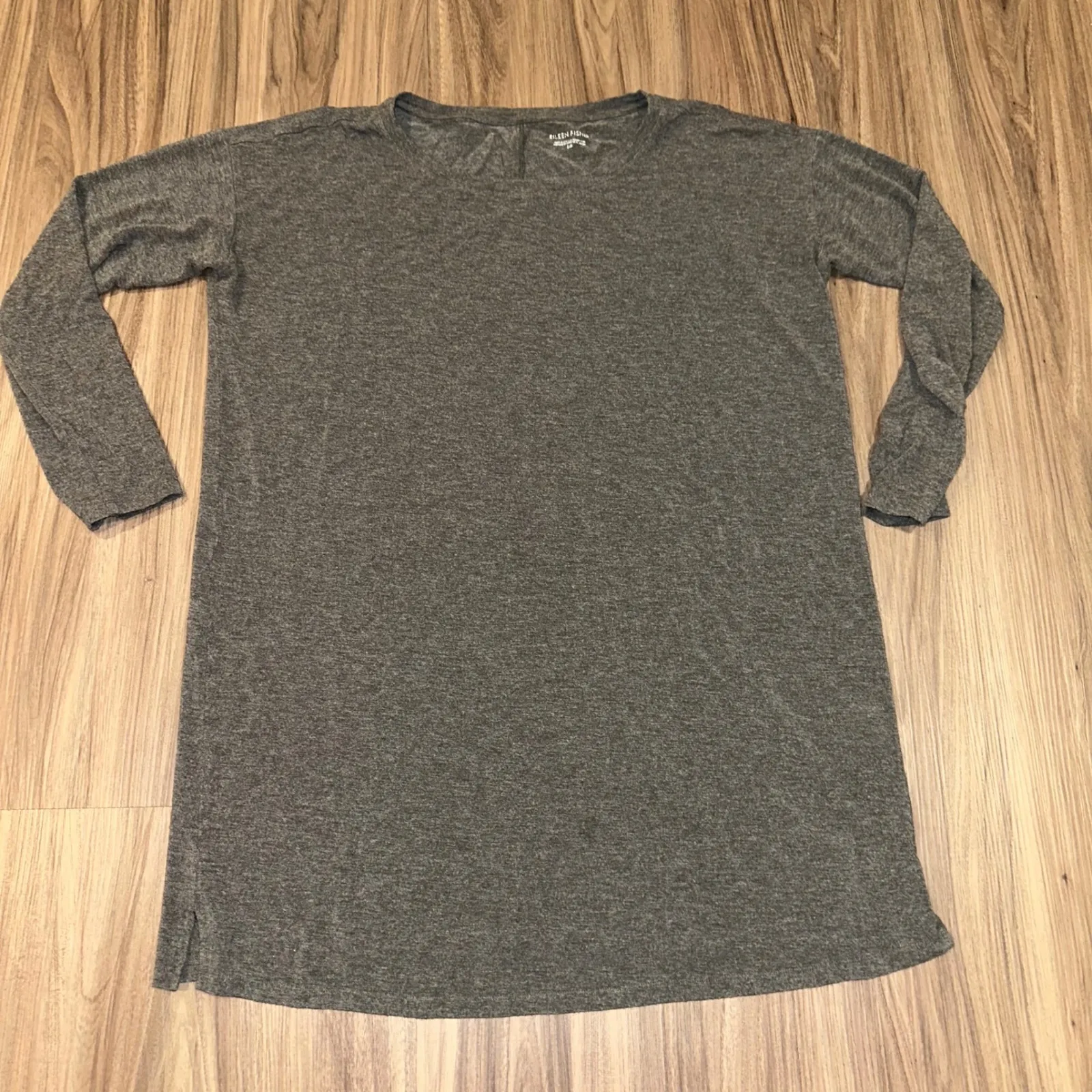 Discover effortless comfort and sophisticated style in this Eileen Fisher charcoal grey tunic dress.... Show more