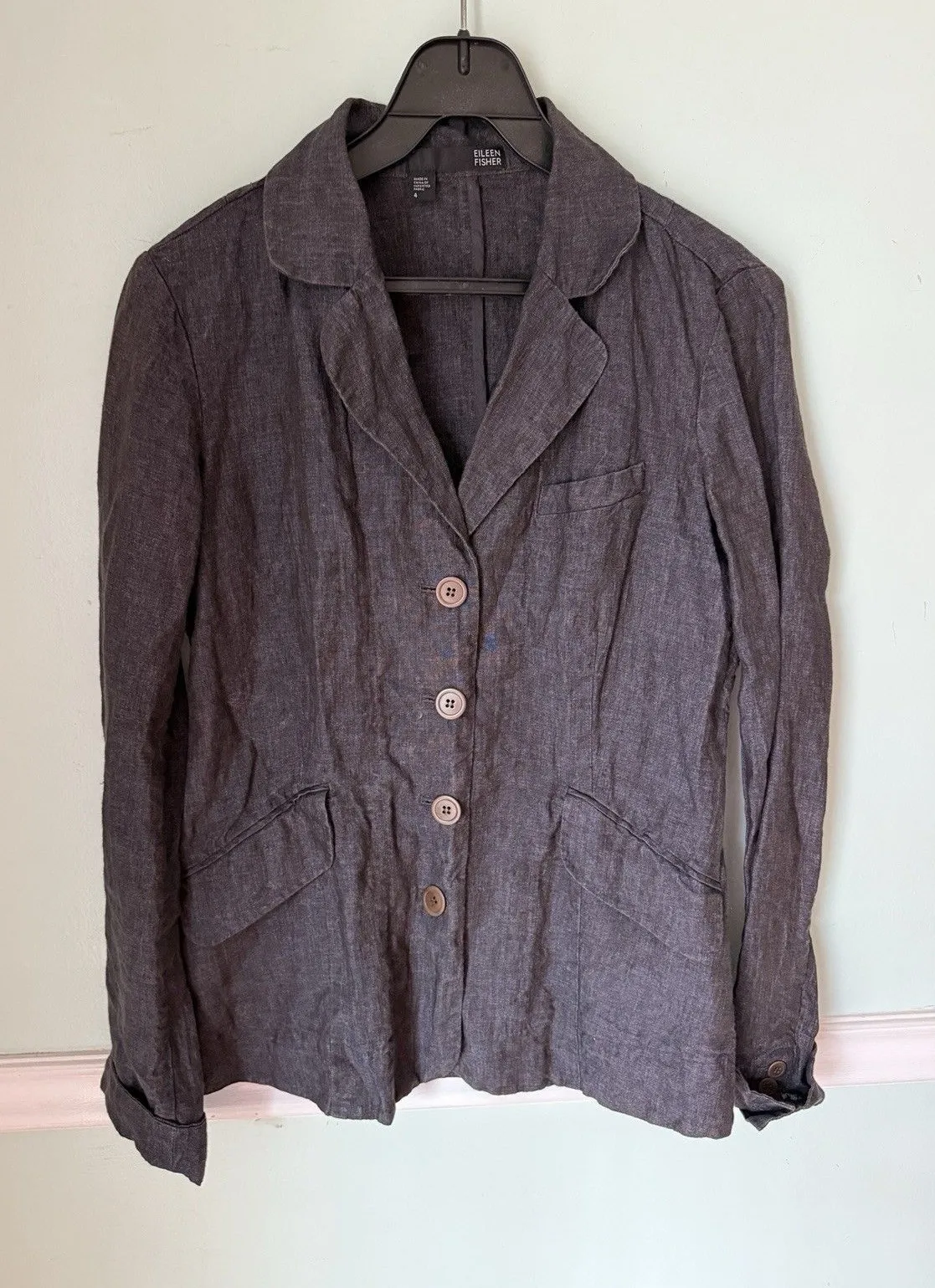 Eileen Fisher Jacket Womens Small Irish Linen Lagenlook Beachy Artsy Lightweight Blue - $30 - From NiCole