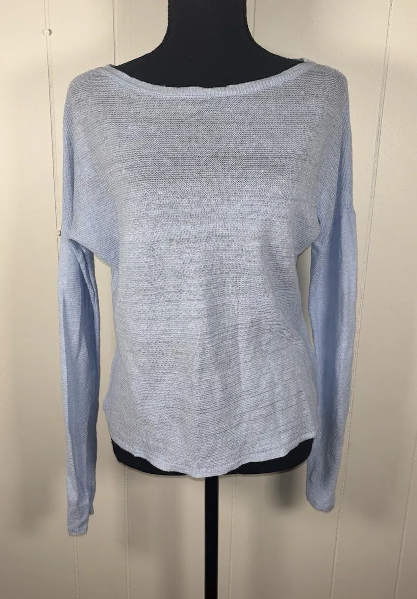 The Eileen Fisher light blue linen slub organic cotton lightweight sweater in size small is a stylis... Show more