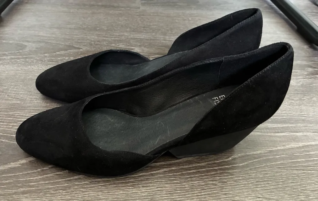 Chic black suede wedges by Eileen Fisher. Sleek design for versatile wear.