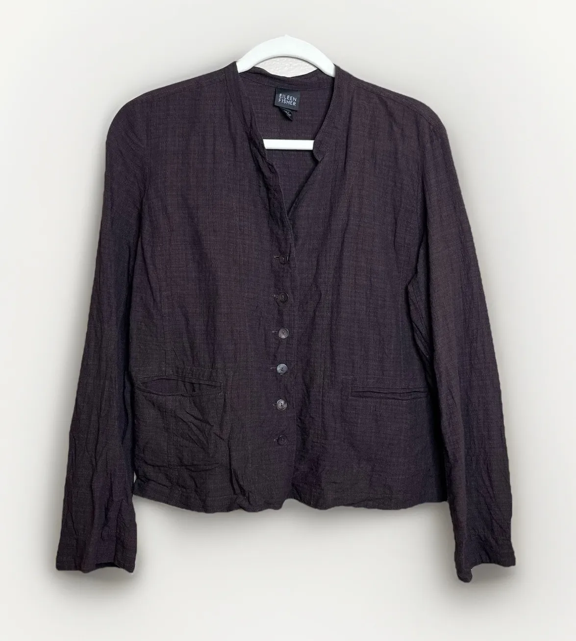 A gorgeous piece by Eileen Fisher -linens blend -dark chocolate / espresso brown -button front -lig... Show more