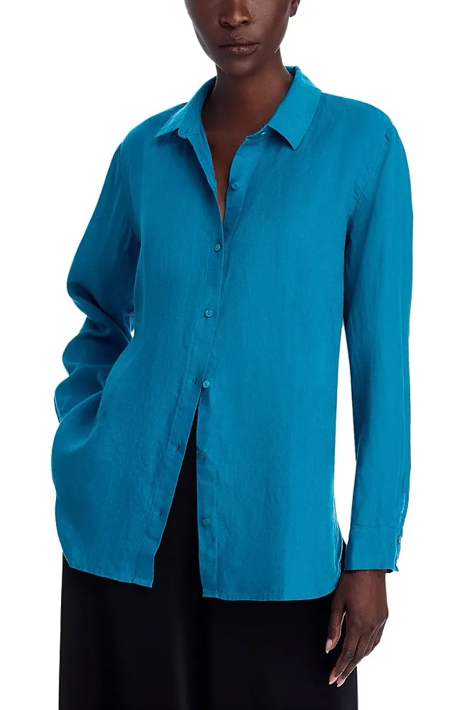 Point collar Long sleeves with button cuffs Front button closures Back yoke and box pleat detail Hig... Show more